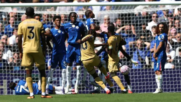 "ภายหลังจากการตรวจสอบ ผู้เล่นหมายเลข 6 ของทีมเยือนยืนห่างจากกำแพงน้อยกว่า 1 เมตรในจังหวะที่มีการยิง ดังนั้นจึงให้เป็นอินไดเรกท์ฟรีคิก (แก่ เชลซี) และไม่ให้ประตู" พรีเมียร์ลีกชี้แจงผ่าน X พรีเมียร์ลีกแมตช์เซนเตอร์