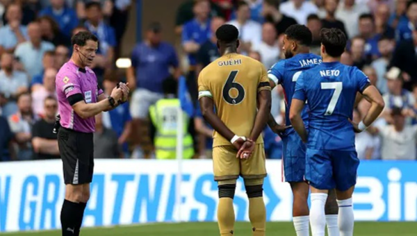 ผู้มาเยือนเริ่มต้นได้ดีกว่า และส่งบอลเข้าไปตุงตาข่ายได้ในนาที 13 จากฟรีคิกระยะ 20 หลา เอเบเรชี่ เอเซ่ ตะบันเท้าขวาทะลุกำแพงเข้าไป แต่หลังจากฉลองประตูกันเรียบร้อย ผู้ตัดสิน ดาร์เรน อิงแลนด์ ก็ปฏิเสธประตูนี้ จากการตรวจสอบโดยวีเออาร์ เหตุเพราะ มาร์ค เกฮี ไปดัน มอยเซส ไกเซโด้ เป็นการยืนห่างจากกำแพงไม่ถึง 1 หลา