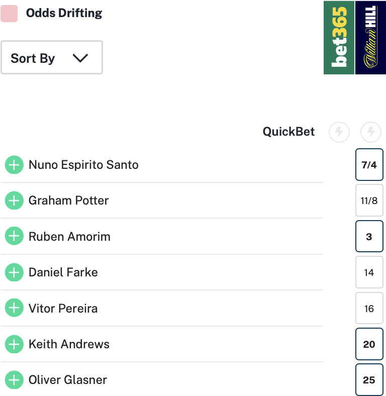 ส่วนเรตจ่ายที่ต่ำกว่า อาโมริม ได้แก่ แกรม พ็อตเตอร์ (เวสต์แฮม) 11/8 และ นูโน่ เอสปิริโต ซานโต (ฟอเรสต์) 7/4