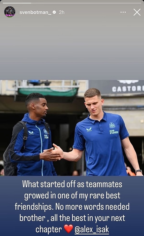 สเวน บ็อตมัน และ แอนโธนี่ กอร์ดอน สองสตาร์ของ นิวคาสเซิ่ล ไม่ได้แสดงความรู้สึกไม่ดีต่อ อเล็กซานเดอร์ อีซัค หลังจากที่เขาย้ายไป ลิเวอร์พูล ด้วยค่าตัวสถิติอังกฤษ