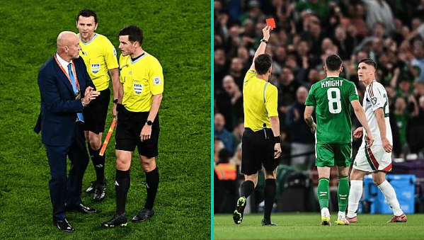"ผู้เล่นของเราตอบสนองด้วยความหงุดหงิด เขาเพรสผู้เล่นไอริช แต่เขาไม่ได้เหยียบเท้า ผู้ตัดสินควรแจกใบเหลือง"