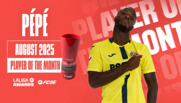 นิโกล่าส์ เปเป้ ปีกตัวเก่งของ บียาร์เรอัล คว้ารางวัลนักเตะยอดเยี่ยมประจำเดือนสิงหาคมของศึกลา ลีกา สเปน ไปครอง จากผลงานอันโดดเด่นในช่วงออกสตาร์ทฤดูกาล