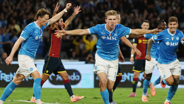 ราสมุส ฮอยลุนด์ ยังคงฟอร์มร้อนแรงต่อเนื่อง เมื่อเป็นคนทำประตูชัยช่วยให้ นาโปลี แซงชนะ เจนัว 2-1