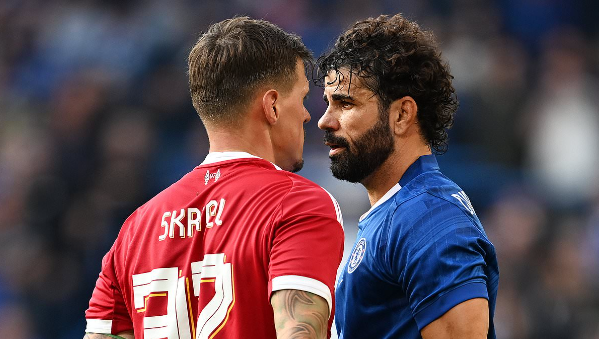 เหตุการณ์รุนแรงเกิดขึ้นราวครึ่งชั่วโมง ในเกมระหว่างตำนานลิเวอร์พูลกับตำนานเชลซีที่สแตมฟอร์ด บริดจ์ เมื่อคอสต้าได้วิ่งเคียงบ่าเคียงไหล่กับสเคอร์เทลที่อยู่ตรงกลางสนามเพื่อแย่งบอลจากเขา