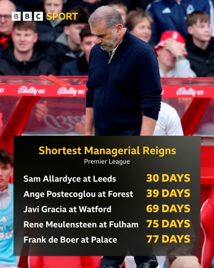 ส่วนการอยู่บนตำแหน่ง 39 วันถูกปลดถึอว่าสั้นสุดตลอดกาลลำดับสอง รองจาก แซม อัลลาไดซ์ ตอนคุม ลีดส์ 30 วันแล้วถูกเด้ง