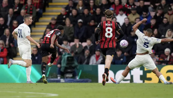 นาทีที่ 40 บอร์นมัธ หนีห่าง 2-0 เมื่อ ไทเลอร์ อดัมส์ จ่ายให้ เอลี่ กรูปี กองหน้าดาวรุ่งลากจี้ขึ้นมาเองแล้วตะบันด้วยเท้าขวาจากระยะ 25 หลา ส่งบอลเสียบโคนเสาสุดคม
