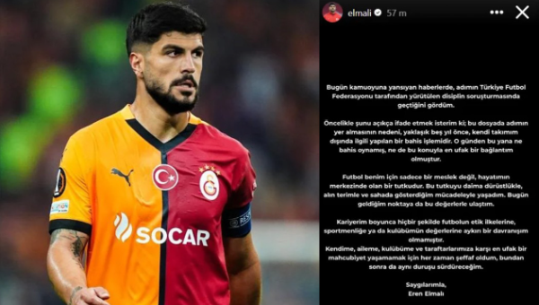 "วันนี้ ข่าวที่เผยแพร่ต่อสาธารณะชน ผมเห็นชื่อของผมถูกกล่าวถึงในการสอบสวนทางวินัยของสหพันธ์ฟุตบอลตุรกี ก่อนอื่น ผมขอชี้แจงให้ชัดเจนว่า เหตุผลที่ชื่อของผมปรากฏในกระบวนการนี้ คือ การเดิมพันที่เกิดขึ้นเมื่อประมาณห้าปีที่แล้ว และอยู่นอกบริบทของทีมผมในขณะนั้น นับตั้งแต่นั้นมา ผมไม่เคยเดิมพันหรือมีความเกี่ยวข้องใดๆ กับเรื่องนี้อีกเลย"