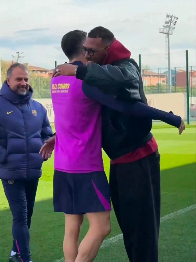 เยโรม บัวเต็ง พูดคุยกับเพื่อนเก่าอย่าง โรเบิร์ต เลวานดอฟสกี้ ระหว่างเดินทางมาปรากฎตัวที่สนามฝึกซ้อมของ บาร์เซโลน่า