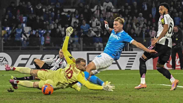 จากนั้นอีกนาที เนเรสควบมาทางขวา แล้วผ่านเข้ากลาง ราสมุส ฮอยลุนด์ ชาร์จด้วยซ้ายจ่อๆ ไม่พลาด นาโปลีนำ 1-0 อย่างรวดเร็ว