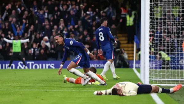 นาทีที่ 21 เชลซี มาออกนำ 1-0 จากจังหวะที่ มาโล กุสโต้ จ่ายทะลุช่องเข้าเขตโทษให้ โคล พาลเมอร์ ลากหลุดไปเอี้ยวตัวยิงด้วยเท้าซ้ายตุงตาข่าย