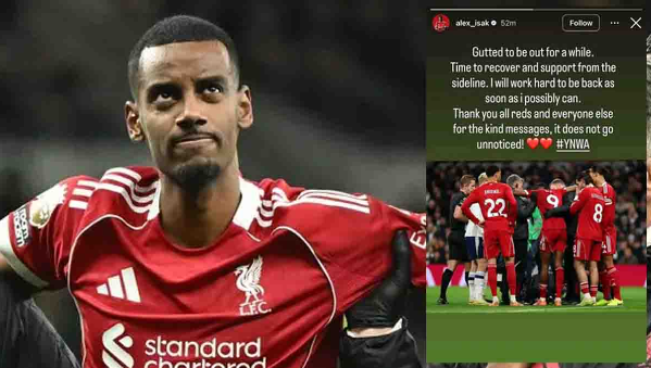 อเล็กซานเดอร์ อีซัค ได้ออกมาพูดถึงอาการบาดเจ็บที่น่าผิดหวังอีกครั้งของตนเอง จากเกมที่ ลิเวอร์พูล บุกชนะ สเปอร์ส เมื่อสุดสัปดาห์ที่ผ่านมา