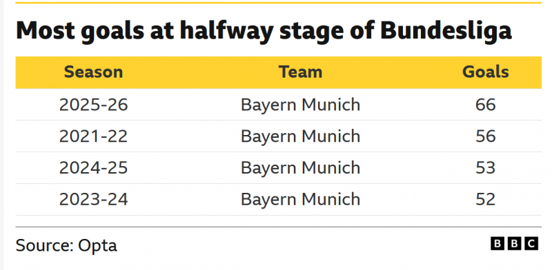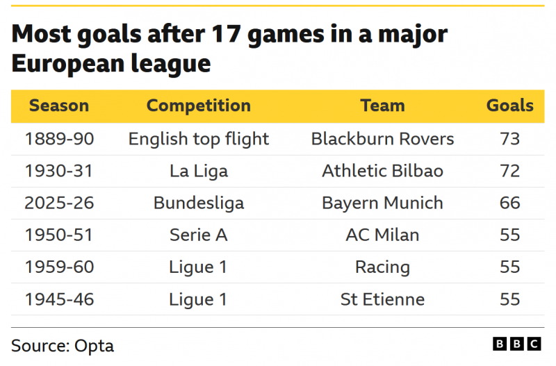 จำนวนประตูของบาเยิร์น มิวนิค ในช่วงเวลานี้ ไม่เคยเกิดขึ้นในลีกชั้นนำของยุโรปใดๆ นับตั้งแต่ทศวรรษ 1930