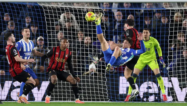 ไบรท์ตัน ได้ลูกยิงจักรยานอากาศสุดสวยของ าราลัมปอส คอสตูลาส ตัวสำรองในช่วงทดเวลาบาดเจ็บไล่ตีเสมอ บอร์นมัธ 1-1 ในเกมพรีเมียร์ลีก มันเดย์ไนท์