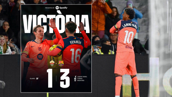จากนั้นจบเกม บาร์เซโลน่า บุกชนะ เอลเช่ 3-1 มีเพิ่มเป็น 55 คะแนน ทิ้งห่าง เรอัล มาดริด 4 คะแนน แต่แข่งมากกว่า 1 นัด