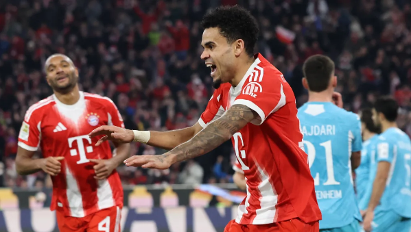 บาเยิร์น มิวนิค เปิดบ้านถล่ม ฮอฟเฟ่นไฮม์ ที่เหลือ 10 คนตั้งแต่ต้นเกม 5-1 โดย หลุยส์ ดีอาซ ทำแฮตทริกได้ด้วย