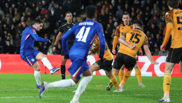 เริ่มเกมมานาทีที่ 9 เชลซี มีลุ้นก่อน มอยเสส ไกเซโด้ จ่ายบอลให้ การ์นาโช่ ที่ใช้ความแข็งแกร่งเบียดตัวประกบแล้วซัดเต็มข้อจากทางฝั่งซ้าย ดิลลอน ฟิลลิปส์ นายทวารเจ้าถิ่นยังปัดเอาไว้ได้ บอลกลับกระดอนไปเข้าทาง เนโต้ พยายามจะซ้ำ แต่ เรแกน สเลเตอร์ พุ่งเข้ามาบล็อกลูกยิงจังหวะสำคัญนี้ไว้ได้