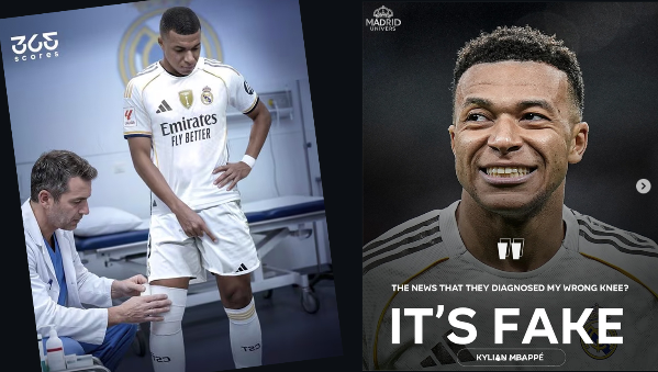 คีลิยัน เอ็มบั๊ปเป้ ปฏิเสธรายงานข่าวจากสื่อเมื่อวันพุธที่ผ่านมา ที่อ้างว่า เรอัล มาดริด ตรวจเข่าผิดข้าง เมื่อดาวเตะชาวฝรั่งเศสได้รับบาดเจ็บที่เข่าเมื่อปลายปีที่แล้ว