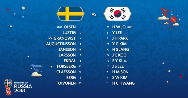 สวีเดน : โรบิน โอลเซ่น, มิคาเอล ลุสติก, ปอนตุส ยานส์สัน, อันเดรียส กรานควิสต์, ลุดวิก เอากุสตินส์สัน, วิคเตอร์ เคลสเซ่น, เซบาสเตียน ลาร์สสัน, อัลบิน เอคดาล, เอมิล ฟอร์สเบิร์ก, โอล่า ตอยโวเน่น, มาร์คุส เบิร์ก
