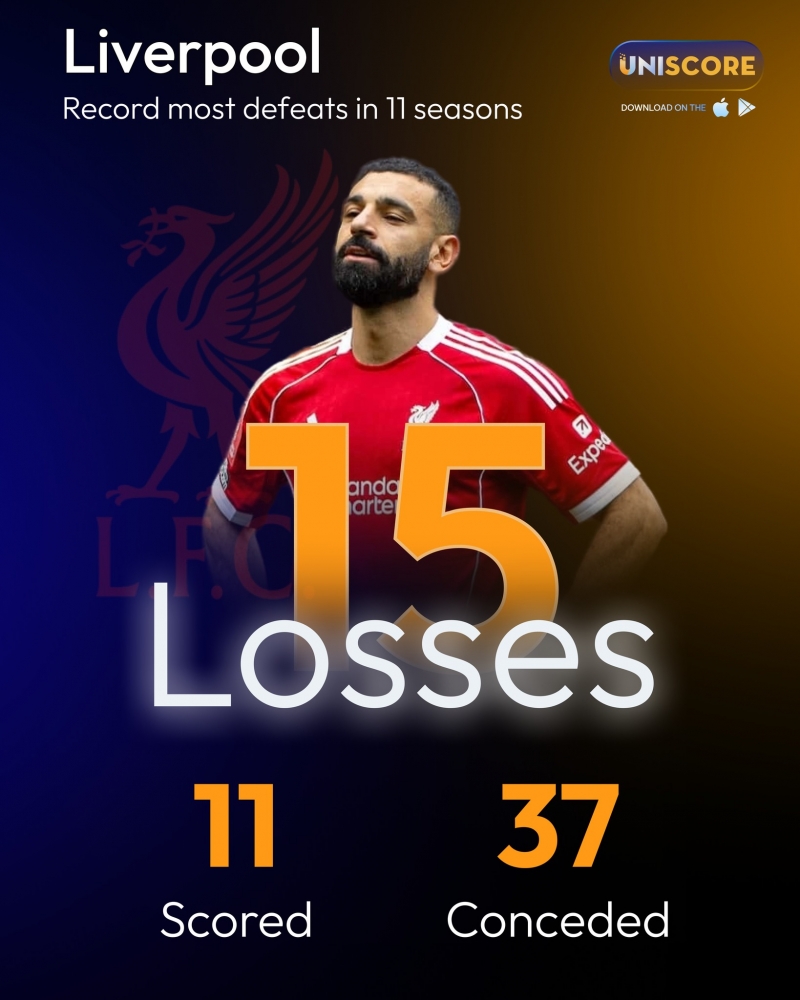 ความพ่ายแพ้ของลิเวอร์พูลต่อแมนฯ ซิตี้ 0-4 ในเอฟเอ คัพ เป็นความพ่ายแพ้ครั้งที่ 15 ของฤดูกาล ซึ่งมากที่สุดในฤดูกาลเดียวตั้งแต่ฤดูกาล 2014/2015