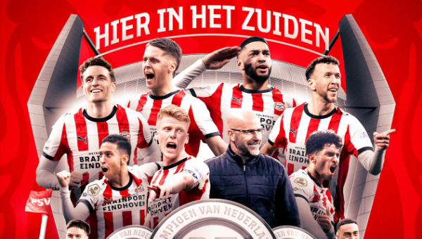 พีเอสวี ได้ฉลองถาดแชมป์ลีกสูงสุดแดนกังหันเป็นปีที่ 3 ติดต่อกัน หลังจากที่รองจ่าฝูงอย่าง เฟเยนูร์ด ทำได้เพียงบุกไปเสมอ โฟเลนดัม 0-0 ในเกมเมื่อวันอาทิตย์ที่ผ่านมา ส่งผลให้แต้มขาดลอยแม้จะเหลือการแข่งขันอีก 5 นัดก็ตาม