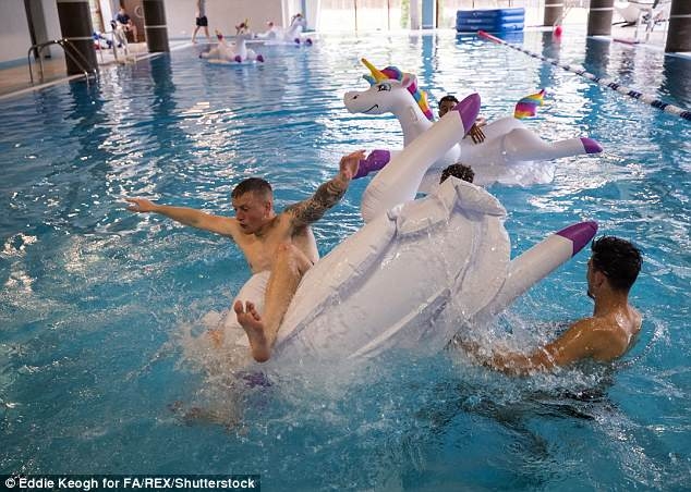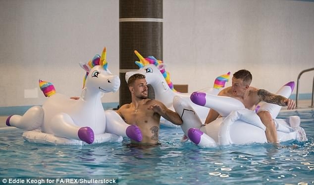 นำทัพโดยกองกลางสายแบ๊ว เจสซี่ ลินการ์ด, นายด่าน จอร์แดน พิคฟอร์ด, รองกัปตัน จอร์แดน เฮนเดอร์สัน หรือ ปราการหลัง แฮร์รี่ แม็คไกวร์ ขี่ตุ๊กตายางรูปม้ายูนิคอร์นเล่นน้ำสนุกสนาน