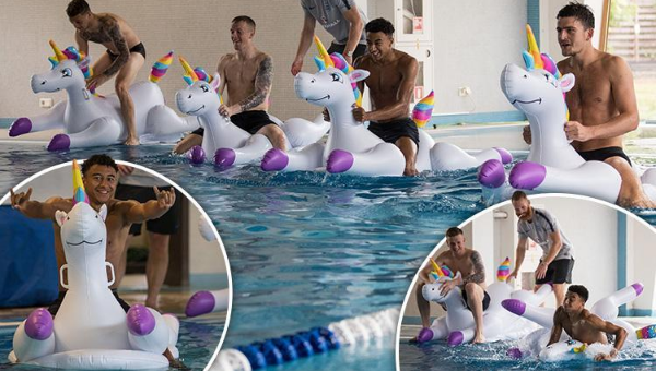 ซึ่ง 24 ชั่วโมงหลังแมตช์เดย์ ผจก.ทีม แกเร็ธ เซาธ์เกต เน้นไปที่การฟื้นฟูกล้ามเนื้อสำหรับนักเตะที่ลงแข่ง เราจึงได้เห็นกิจกรรมน่ารักๆอย่างประลองความเร็วด้วยการขี่ตุ๊กตายางในสระน้ำ