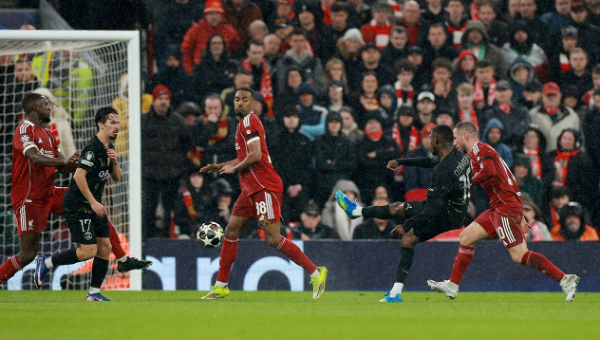ลิเวอร์พูล ได้กลับมาเล่นในบ้านหลังจากนัดแรกแพ้ที่ฝรั่งเศส 0-2 แต่เป็นทาง เปแอสเช ที่มีลุ้นก่อนในนาทีที่ 3 เดซีเร่ ดูเอ้ จ่ายบอลให้ ควิช่า ควารัตสเคเลีย กดด้วยขวาหน้าเขตโทษ บอลเข้ากรอบแต่ จอร์จี้ มามาดาชวิลลี่ เซฟเอาไว้ได้