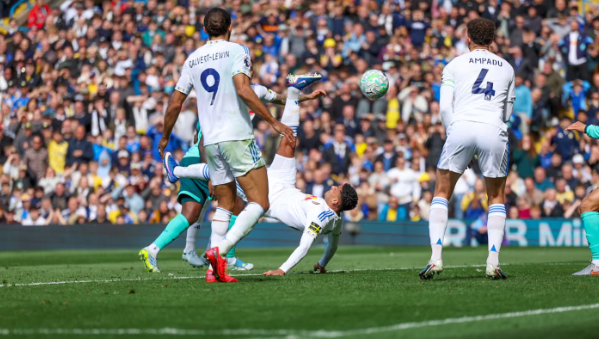 นาทีที่ 18 ลีดส์ มาออกนำ 1-0 จากลูกเตะมุม ยาก้า บิโยล โหม่งเช็ดไปเข้าทาง อีธาน แอมปาดู ได้ยิงจ่อๆ ถูก เบนท์ลี่ย์ เซฟได้เหลือเชื่อ แต่บอลยังมาเข้าทาง โนอาห์ โอคาฟอร์ กระดกตั้งแล้วเป็น เจมส์ จัสติน ตีลังกายิงบอลเข้าประตูไปเลย
