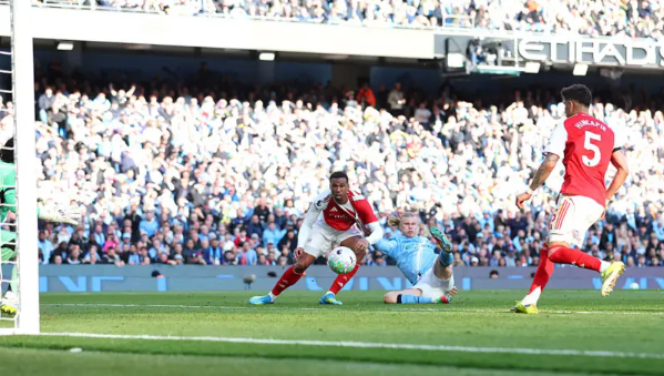 นาทีที่ 4 แมนฯ ซิตี้ เกือบนำเร็ว จากบอลที่ นิโก้ โอไรลี่ ปาดมาให้ เออร์ลิง ฮาแลนด์ ไขว้ยิงติดบล็อค บอลมาเข้าทาง รายาน แชร์กี ได้ยิงซ้ำไปแฉลบ กาเบรีบล มากัลเญส เล็กน้อยไปชนเสาก่อนเด้งมาเข้าซอง ดาบิด ราย่า