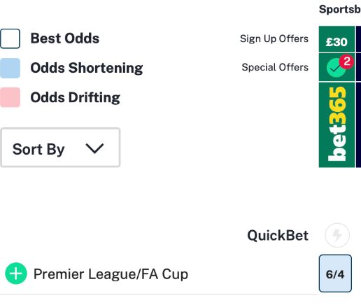 สกาย เบต บ่อนถูกกฎหมายของยุโรปเปิดราคา แมนฯ ซิตี้ เหมาสองแชมป์ พรีเมียร์ ลีก อังกฤษ และ เอฟเอ คัพ ที่ 6/4 (แทง 4 จ่าย 6 ไม่รวมทุน)
