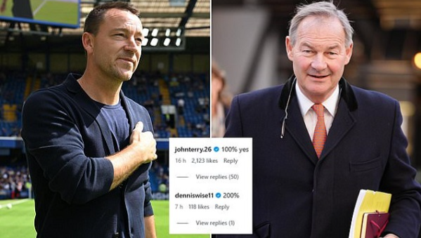 เทอร์รี่ แสดงการสนับสนุนในช่องแสดงความคิดเห็น โดยอดีตดาวเตะเชลซีเขียนตอบกลับว่า "เห็นด้วย 100%"