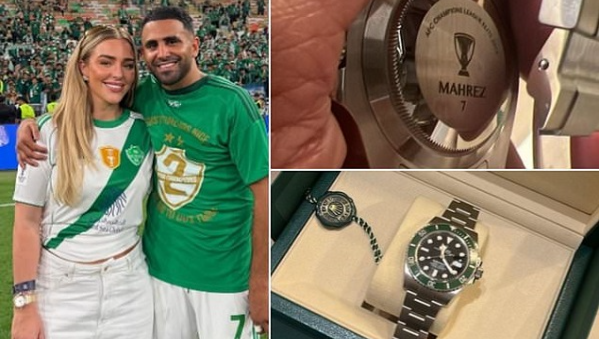 ริยาด มาห์เรซ ทุ่มเงินก้อนโตจากค่าเหนื่อย 875,000 ปอนด์ต่อสัปดาห์ ซื้อนาฬิกา โรเล็กซ์ สั่งทำพิเศษให้เพื่อนร่วมทีม อัล อาห์ลี หลังจากที่พวกเขาคว้าแชมป์ เอเอฟซี แชมเปียนส์ ลีก ได้สำเร็จ