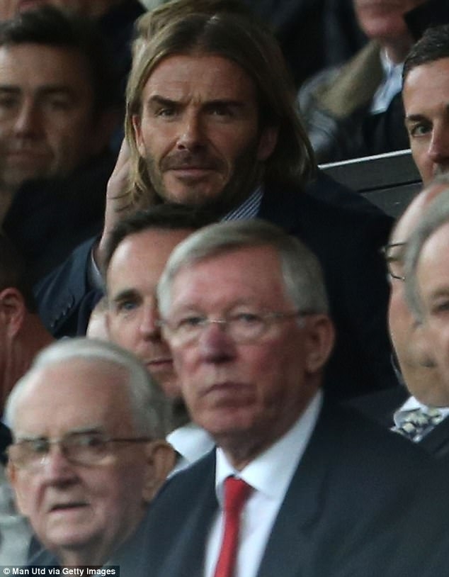 แบ็คแฮม (บน) มาชมเกมโดยไม่ห่างกันนั้น มิสเตอร์ เฟอร์กูสัน เจ้านายเก่า(ล่าง) ก็มาด้วย