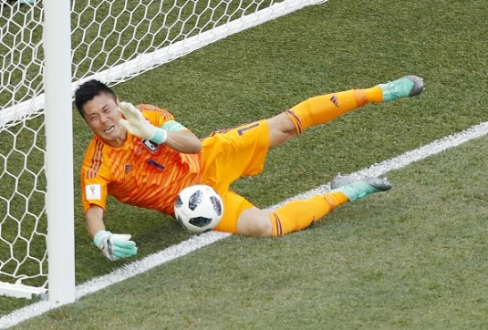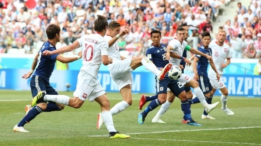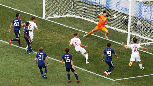 โปแลนด์ มีลุ้นประตูบ้างในนาที 32 บาร์ตอส เบเรซินสกี้ ครอสจากด้านขวาให้ คามิล โกรซิชกี้ โหม่งหามุมประตูแล้ว แต่ถูก เออิจิ คาวาชิมะ พุ่งเซฟได้สุดยอด ซึ่งเมื่อดูจากภาพกราฟฟิกโกลไลน์แล้ว บอลเกือบข้ามเส้นทั้งใบอยู่แล้ว