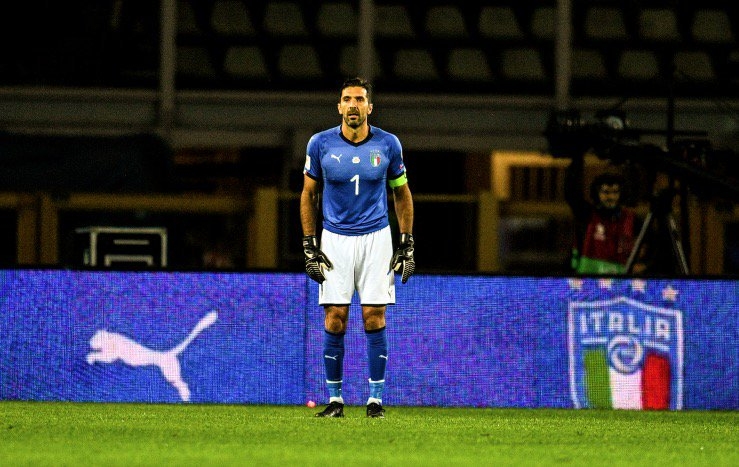 จานลุยจิ บุฟฟ่อน นายทวารระดับตำนานของทีมชาติอิตาลี ได้รับเกียรติสวมชุดแข่งสี "น้ำเงิน" ลงสนามเป็นครั้งแรกในเกมฟุตบอลโลก 2018 รอบคัดเลือก ที่เสมอมาซิโดเนีย 1-1 เมื่อวันศุกร์ที่ 6 ต.ค. หลังรับใช้ชาติมาครบ 20 ปีเต็ม ขณะที่เพื่อนร่วมทีมต้องสวมชุดเยือนสีขาวแทน