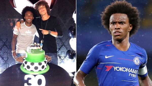 ดาวิด ลุยซ์ ปราการหลังบราซิเลี่ยนหอบเค้กวันเกิดก้อนโตในธีมฟุตบอลมาอวยพรวันเกิดแก่ วิลเลี่ยน ทีมเมต เชลซี รวมถึงหุ้นส่วนร้านอาหารซึ่งมีอายุครบ 30 ปี บริบูรณ์