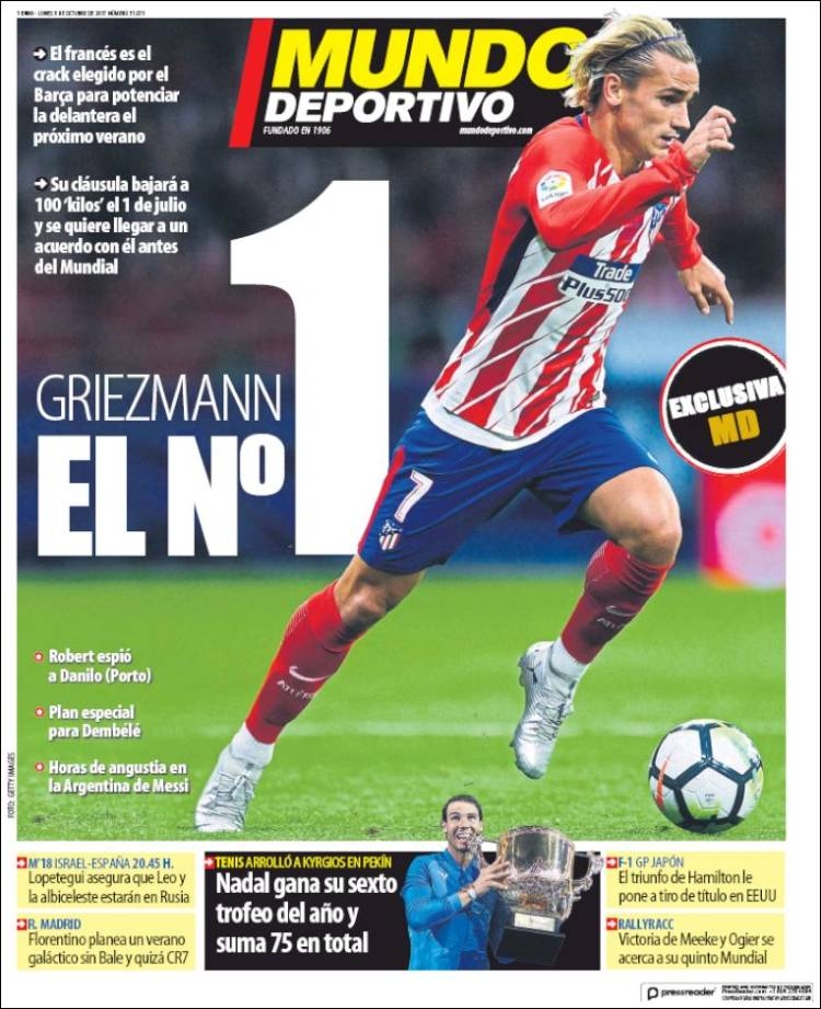 ปัจจุบันสตาร์เฟร้นช์แมนมีค่าฉีกสัญญา 200 ล้าน ยูโร แต่จะลดมาเหลือครึ่งหนึ่งเมื่อเข้าสู่วันที่ 1 มกราคม 2018 นั่นทำให้ซัมเมอร์หน้าอาจมีโอกาสได้โยกย้ายโดยนอกจาก บาร์เซโลน่า ก็ยังมี แมนฯ ยูไนเต็ด ซึ่งแสดงความสนใจเช่นกัน ทีมอาซูลกราน่ามีภาษีเหนือกว่าทีมปีศาจแดงเนื่องจาก เอรีก้า โชเปเรน่า แฟนสาวกรีซมันน์ซึ่งเป็นชาวเมือง ซาน เซบาสเตียน ชื่นชอบฟุตบอลลีกาและการใช้ชีวิตในเมืองกระทิงมากกว่านั่นเอง