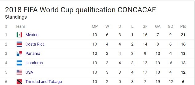 ขณะเดียวกัน ปานามา และ ฮอนดูรัส ที่มีลุ้นเข้ารอบเช่นกัน ต่างทำหน้าที่ตัวเองได้ดีเยี่ยม เก็บชัยเหนือ คอสตาริกา 2-1 และ เม็กซิโก 3-2 ตามลำดับ ทำให้จบรอบคัดเลือกนัดสุดท้าย ปรากฎว่า ปานามา เข้าเป็นที่ 3 มี 13 คะแนนเท่ากับ ฮอนดูรัส แต่ประตูได้เสียปานามาดีกว่า ทำให้คว้าตั๋วเข้ารอบอัตโนมัติเป็นทีมสุดท้าย