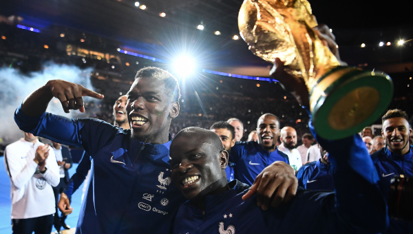 ปอล ป็อกบา กองกลางทีมชาติฝรั่งเศส สุดปลื้มได้ฉลองตำแหน่งแชมป์โลก 2018 ร่วมกับแฟนบอลอย่างเต็มอิ่มที่สนามสต๊าด เดอ ฟร้องซ์ เมื่อคืนวันอาทิตย์ที่ผ่านมา