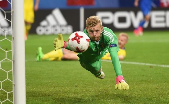 มาเร็ค โรดัค ผู้รักษาประตูทีมชาติสโลวาเกีย ชุดยู-21 โหม่งประตูสุดระทึกในช่วงทดเวลาบาดเจ็บ พาทีมบุกชนะ ไอซ์แลนด์ ในรอบคัดเลือก ยูโร 2019 รุ่นเล็ก