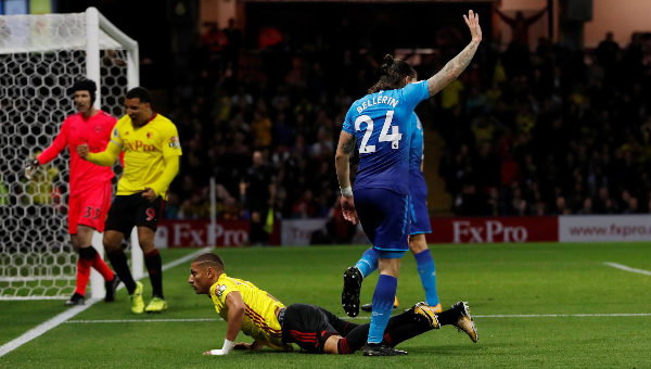 จังหวะดังกล่าวเกิดขึ้นในเกมที่ วัตฟอร์ด เปิดบ้านเอาชนะ อาร์เซน่อล 2-1 เมื่อวันเสาร์ที่ผ่านมา หลังจากกองหน้าบราซิลโดน เอ็คตอร์ เบเยริน สกัดล้มลงไป