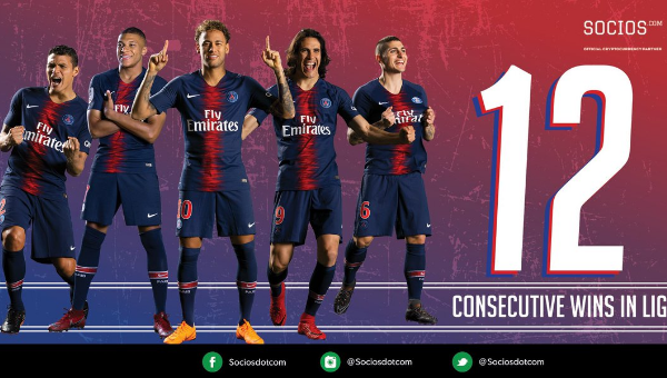 ปารีส แซงต์-แชร์กแมง สร้างประวัติศาสตร์หน้าใหม่กลายเป็นทีมแรกของ 5 ลีกใหญ่ยุโรปที่เก็บชัยชนะได้ 12 นัดรวดนับตั้งแต่เปิดฤดูกาล