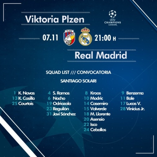 เรอัล มาดริด ออกเดินทางสู่สาธารณรัฐเช็กแล้วเมื่อวันอังคาร โดย ซานติอาโก้ โซลารี่ เทรนเนอร์ชั่วคราวเรียกใช้งาน 20 นักเตะเกมเยือน วิคตอเรีย พิลเซ่น