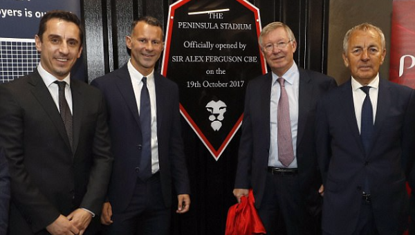 โดยการเปิดตัวสนามใหม่มีเจ้าของทีมร่วมอย่าง พอล สโคลส์, ไรอัน กิ๊กส์ และ แกรี่ เนวิลล์ อดีตลูกน้องที่เคยเป็นนักเตะของเฟอร์กี้ มาร่วมงานด้วย