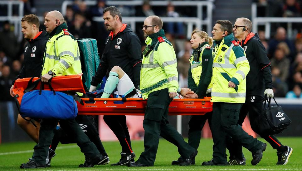 อดัม สมิธ กองหลังบอร์นมัธต้องโดนหามออกจากสนามหลังจากนักเตะมีปัญหาที่หัวเข่าจากเกมที่ผ่านมา