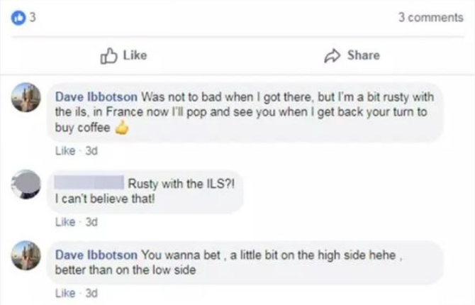 เท่านั้นไม่พอยังมีโพสต์ที่เจ้าตัวคอมเมนต์คุยกับเพื่อนโดยพูดเรื่องระบบเครื่องช่วยการเดินอากาศ (ILS) เป็นเครื่องที่ช่วยให้นักบินสามารถนำเครื่องบินร่อนลงสนามบินในภาวะที่ทัศนวิสัยต่ำ มีสนิมขึ้นด้วย