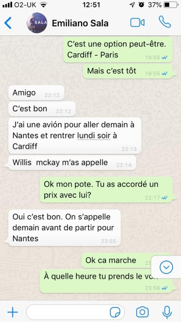 การเปิดเผยจากสื่อท้องถิ่นของฝรั่งเศสอย่าง 'เอวสต์-ฟร้องซ์' เป็นการแคปหน้าจอการสนทนาผ่านแอพลิเคชั่น 'ว็อทส์แอพ' ระหว่างตัวแทนสโมสร คาร์ดิฟฟ์ กับดาวยิงวัย 28 ปี