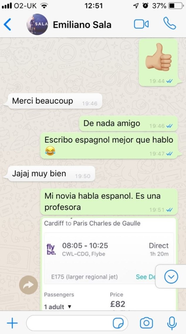 โดยทีมจากพรีเมียร์ลีกบอกให้แข้งอาร์เจนไตน์ที่ย้ายจาก น็องต์ ด้วยค่าหัว 15 ล้าน ปอนด์ มาขึ้นเครื่องสายการบินพาณิชย์ ณ กรุงปารีส ประเทศฝรั่งเศส ทาง 'บลูเบิร์ดส์' จัดการให้แล้ว พิมพ์แจ้งมาผสมระหว่างภาษาฝรั่งเศส - สเปน