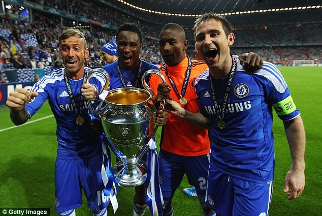 มิเกล โอบี (ที่สองจากซ้าย) เป็นแชมป์ ยูฟ่า ชปล.กับ เชลซี