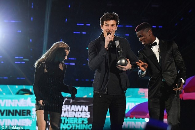 ฌอน เมนเดส (กลาง) รับรางวัลที่ ป็อกบา (ขวา) เชิญให้